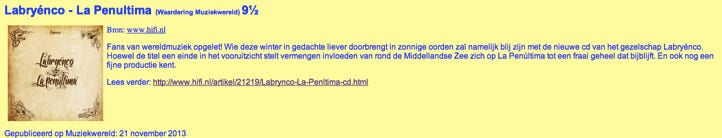 'Maar het is vooral het virtuoze, lyrische en melancholieke spel van Labrie dat alles echt optilt naar een niveau dat de standaard flamenco plaat verre overstijgt…La penúltima is een aanrader!'